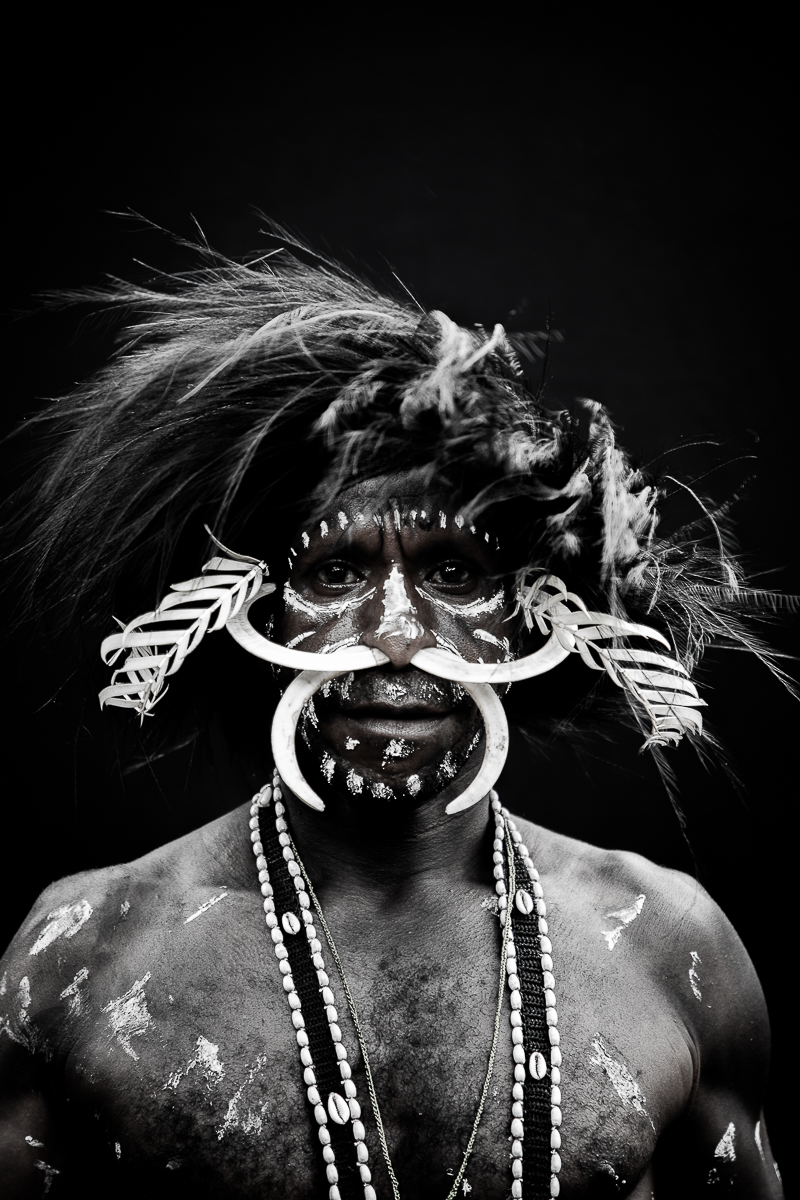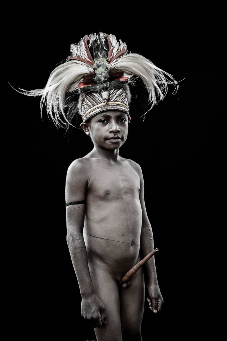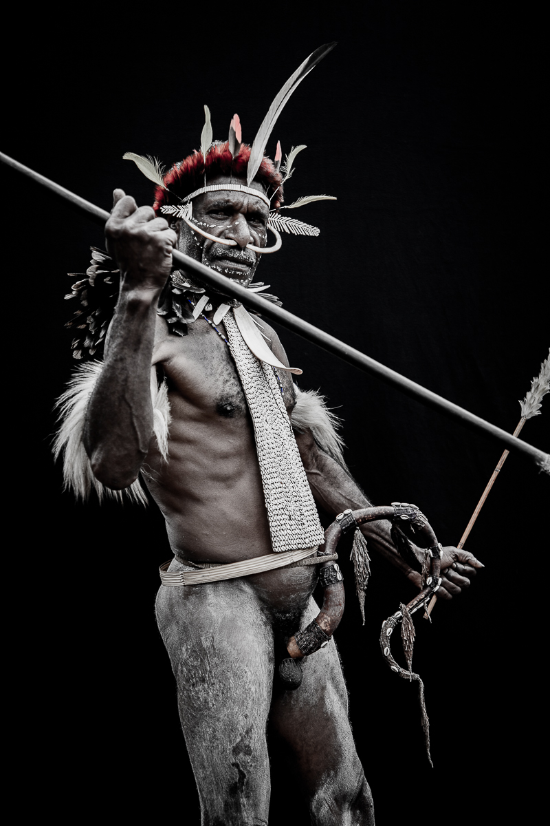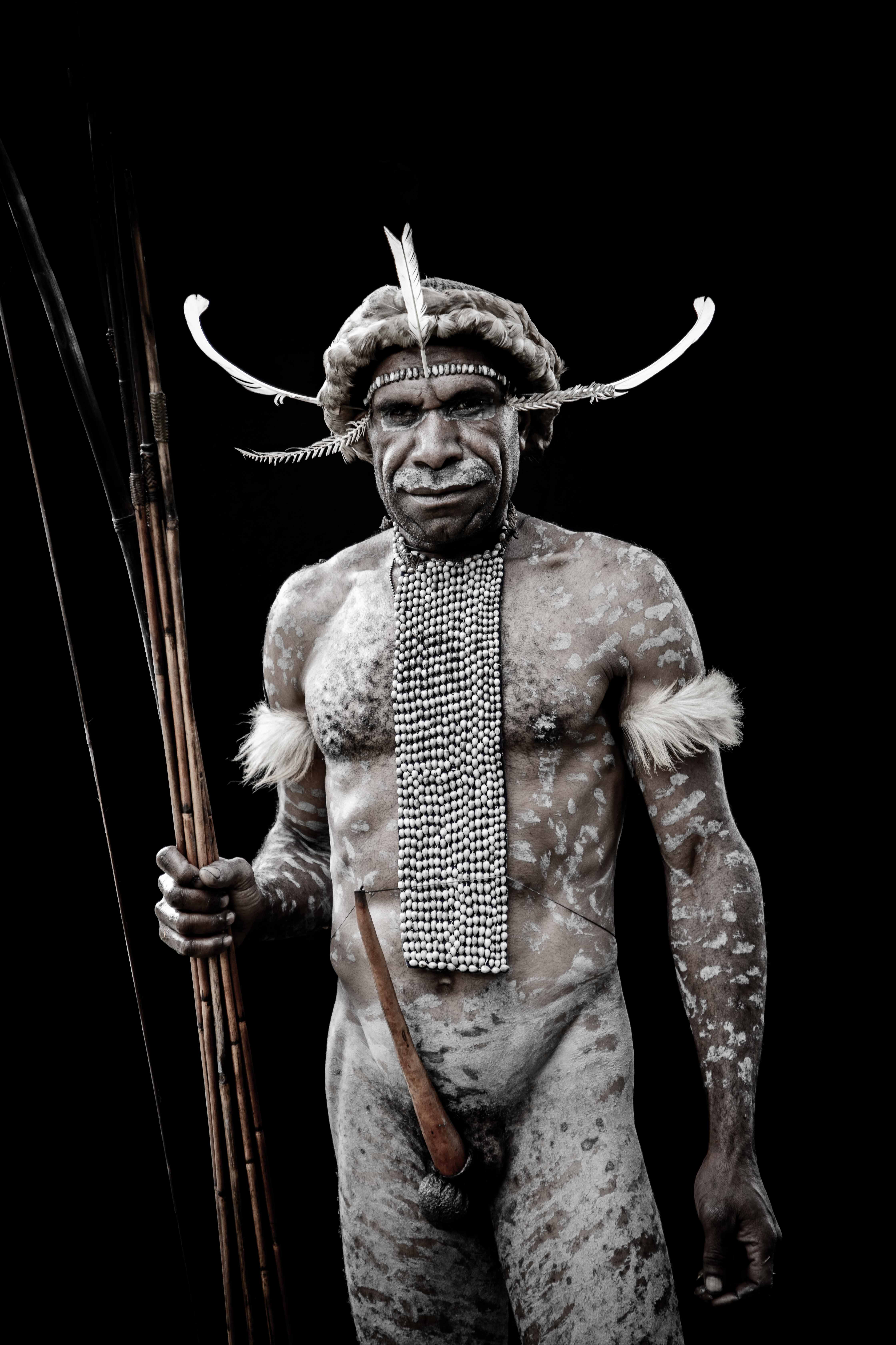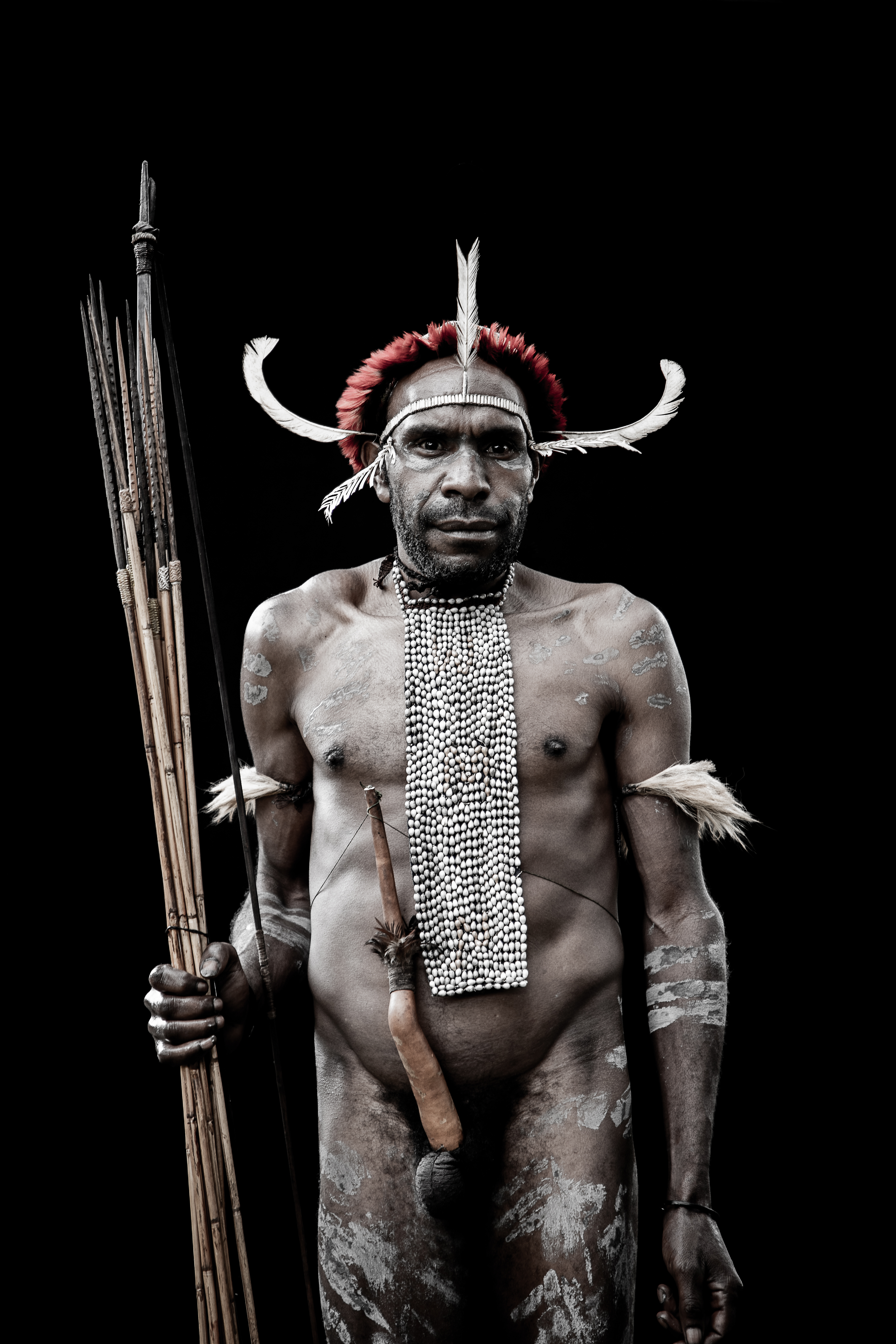 Although thousands of years old, the Dani were unknown to the rest of the world until 1938. Today they they still hunt with bows and arrows in the Papua region of Indonesia, and dress traditionally for celebrations, including wearing a horim or penis gourd.